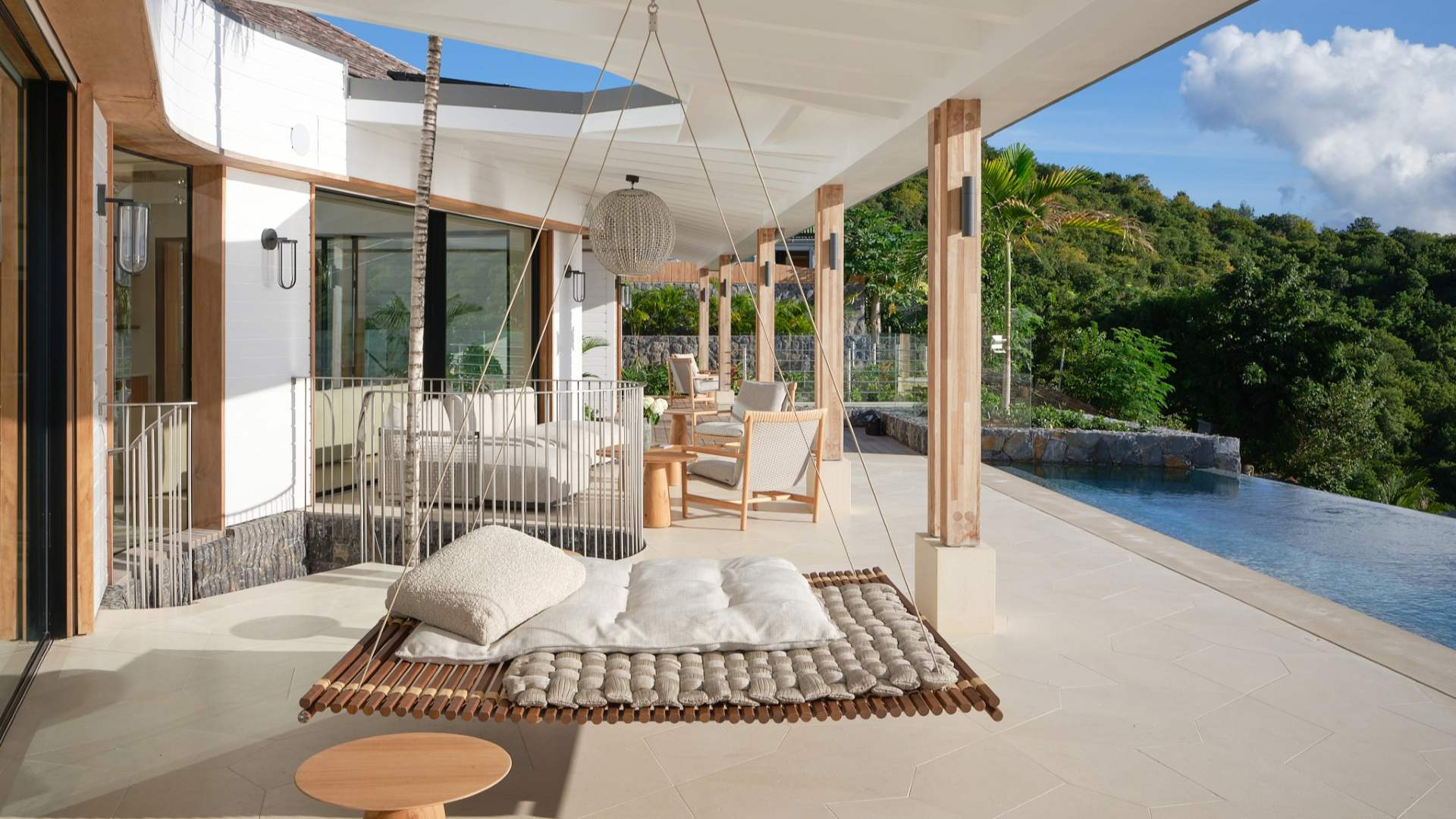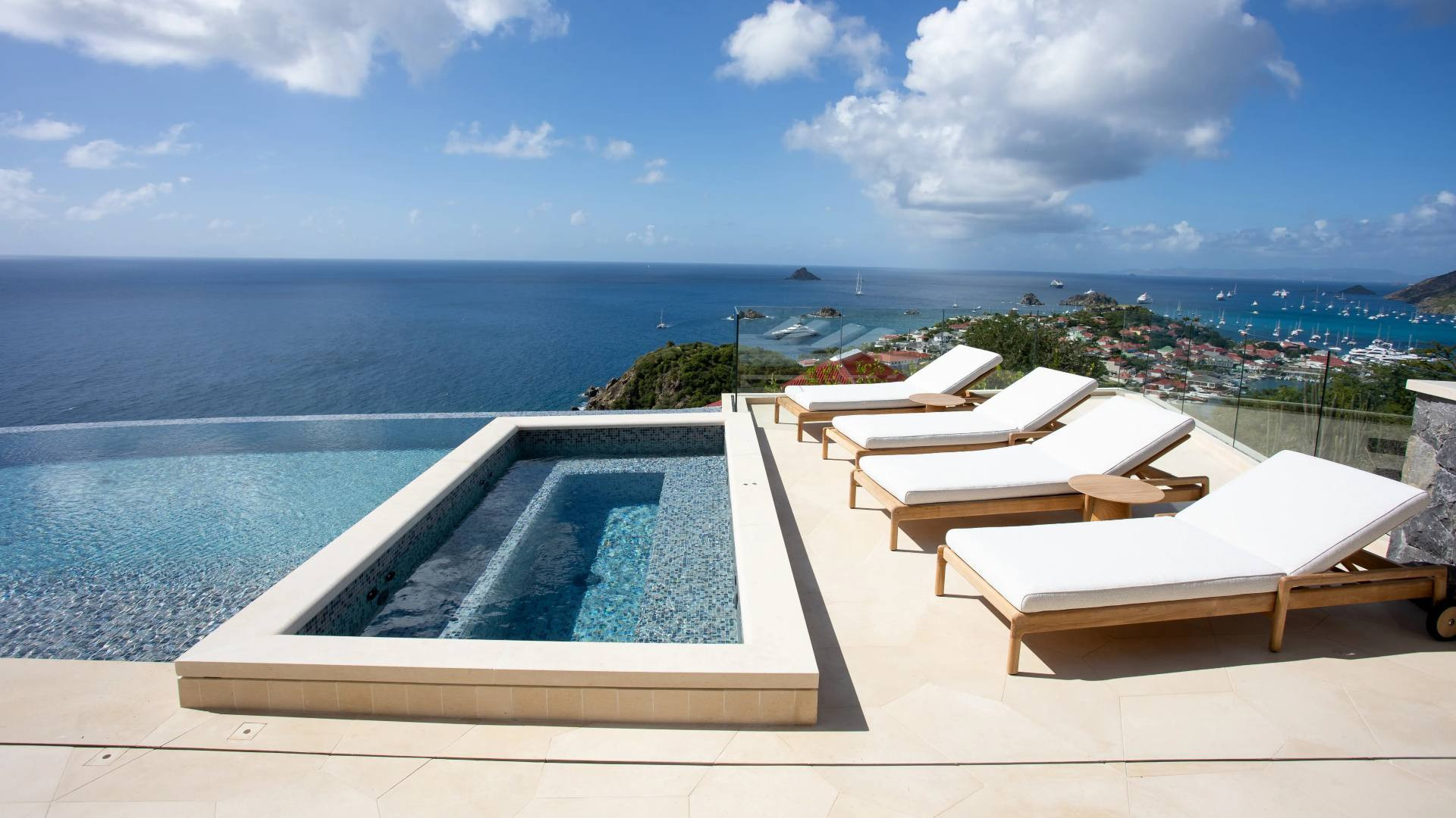 Les extérieurs ont été pensés pour profiter pleinement du lifestyle de Saint-Barth. La villa dispose d’une piscine chauffée avec vue mer, d’un jacuzzi et de plusieurs espaces lounge extérieurs permettant de vivre pleinement l’expérience d’une villa avec piscine à Saint-Barthélemy. Les larges terrasses offrent un cadre parfait pour la détente dans un environnement exclusif et privé.