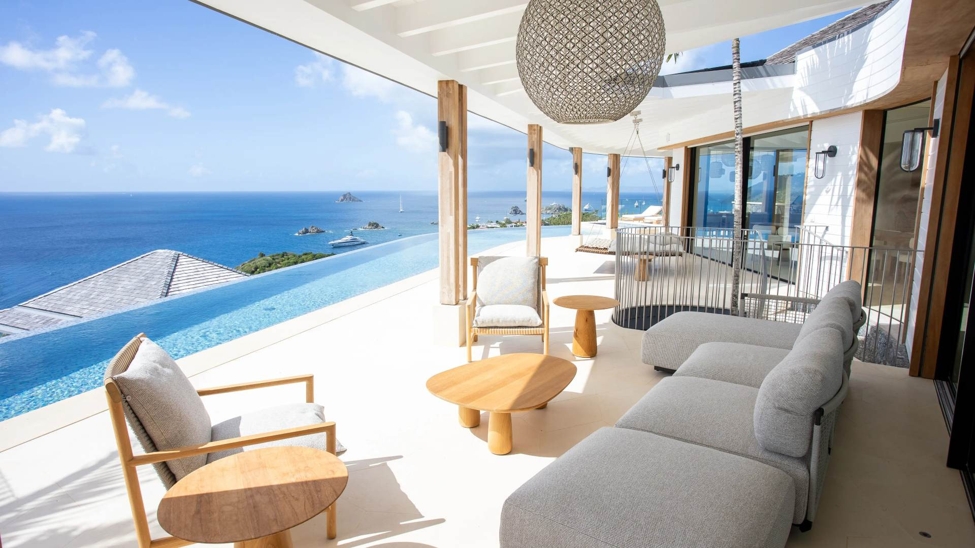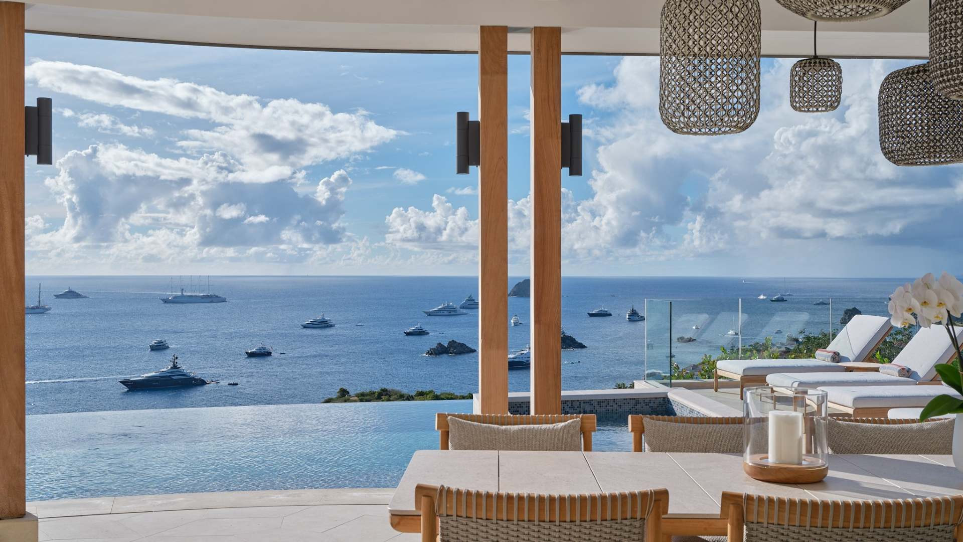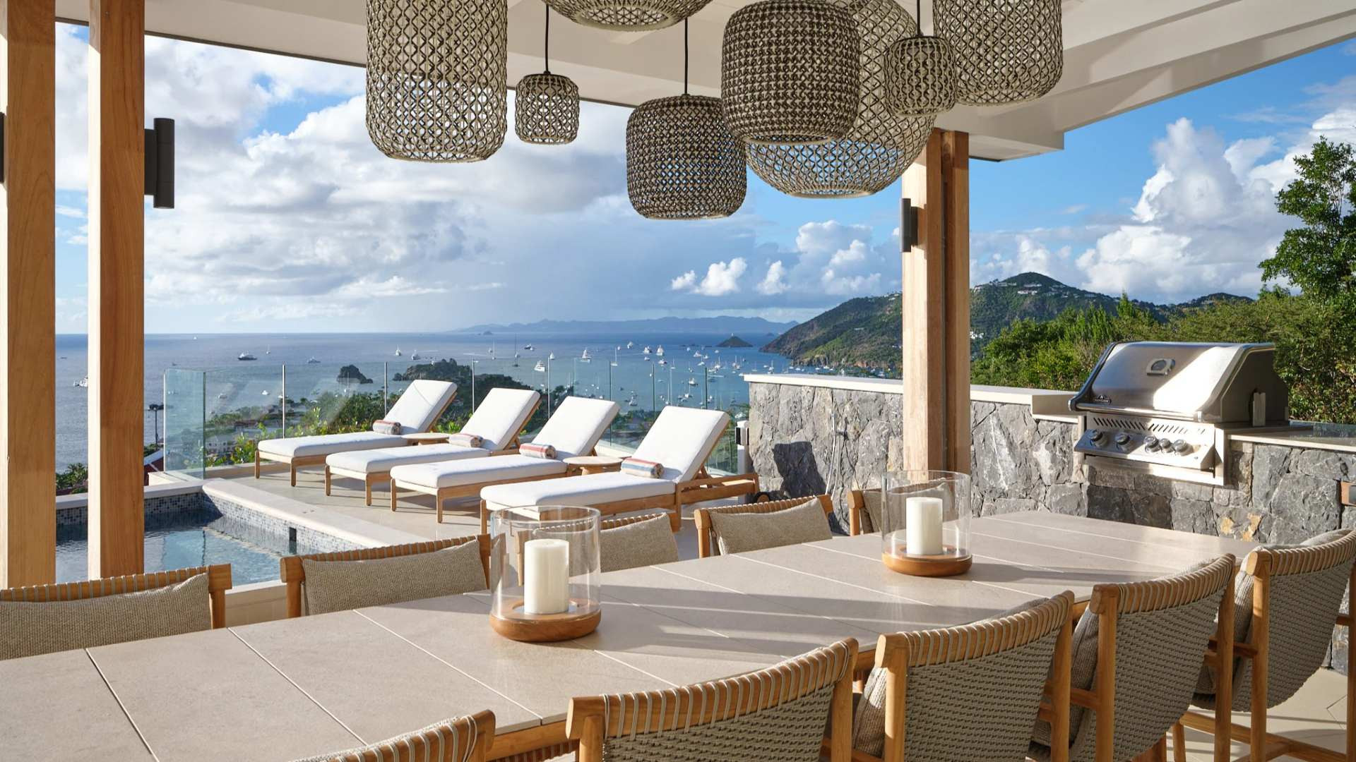 La Villa Les Gaillacs, un joyau niché au sommet de Colombier à St. Barth, offre une expérience de séjour inoubliable avec une vue panoramique à 360° sur l'île et la mer des Caraïbes.