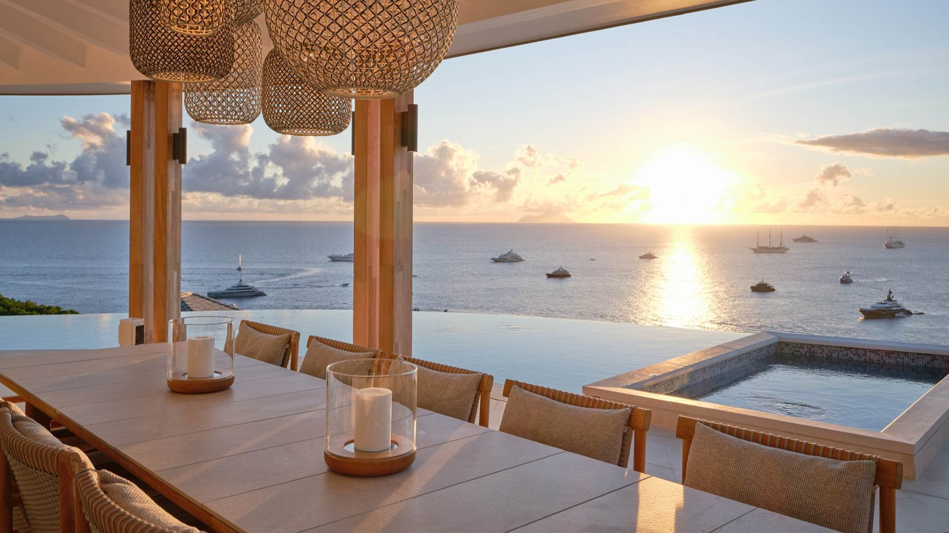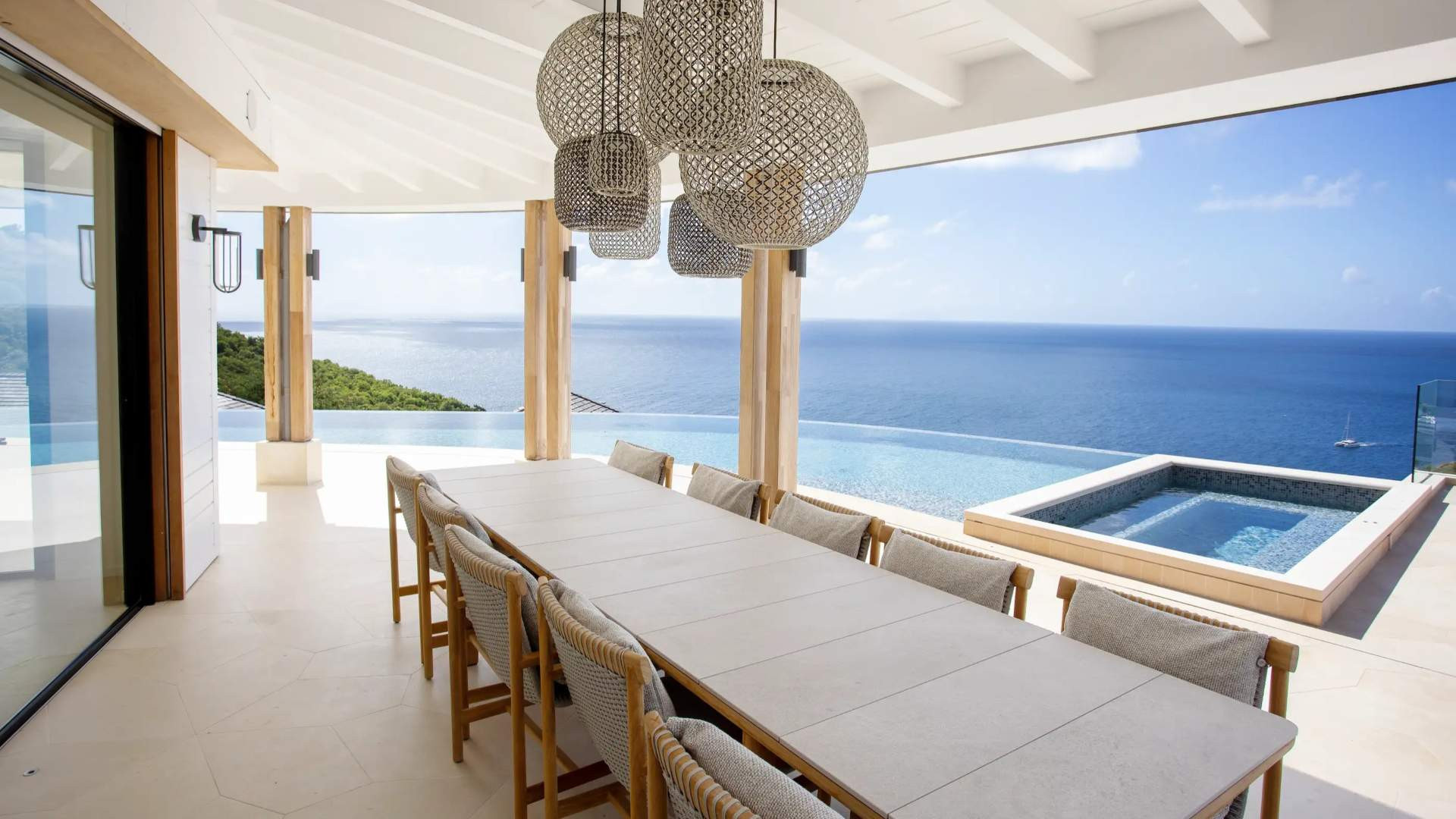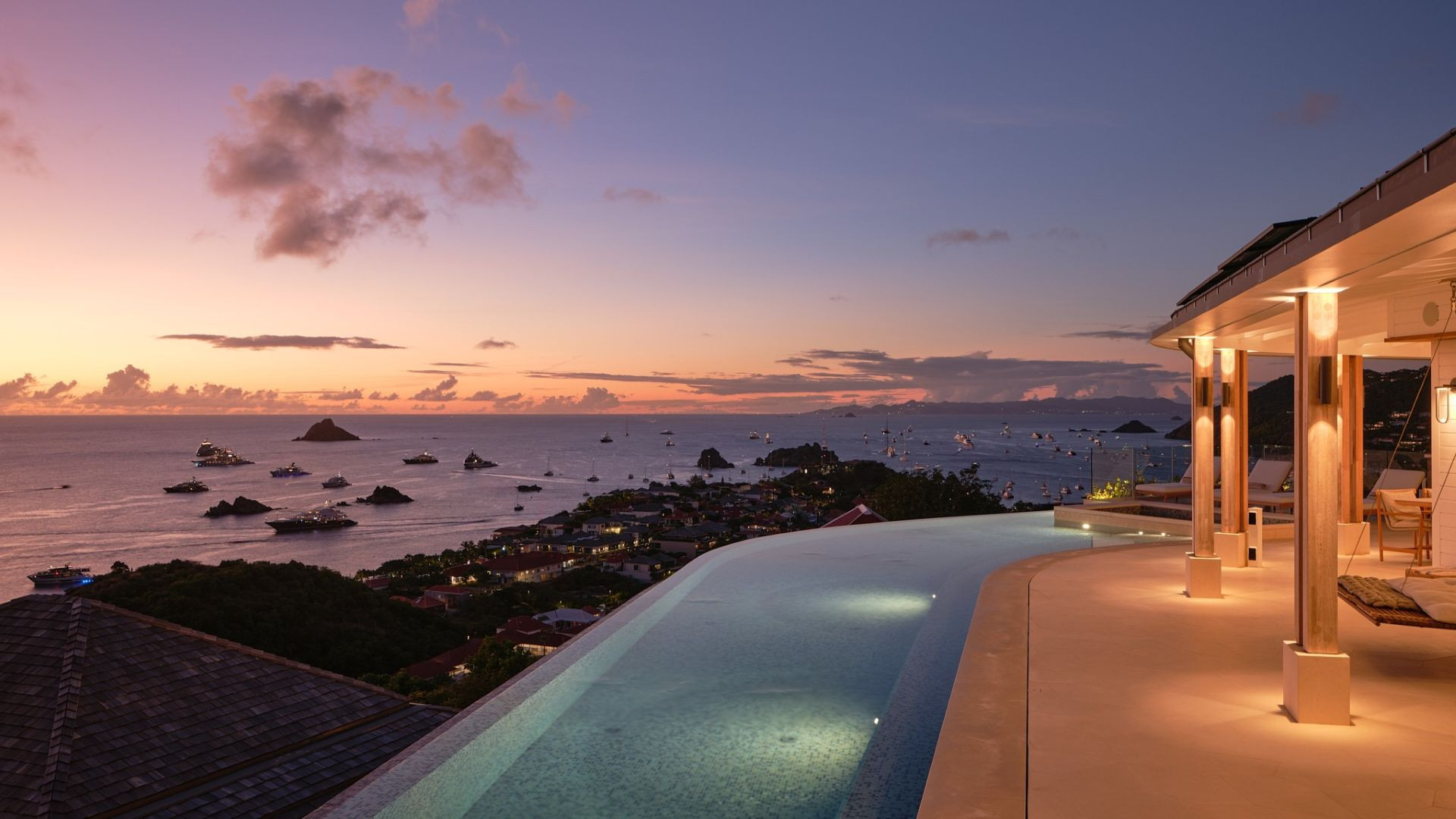 La Villa Les Gaillacs, un joyau niché au sommet de Colombier à St. Barth, offre une expérience de séjour inoubliable avec une vue panoramique à 360° sur l'île et la mer des Caraïbes.