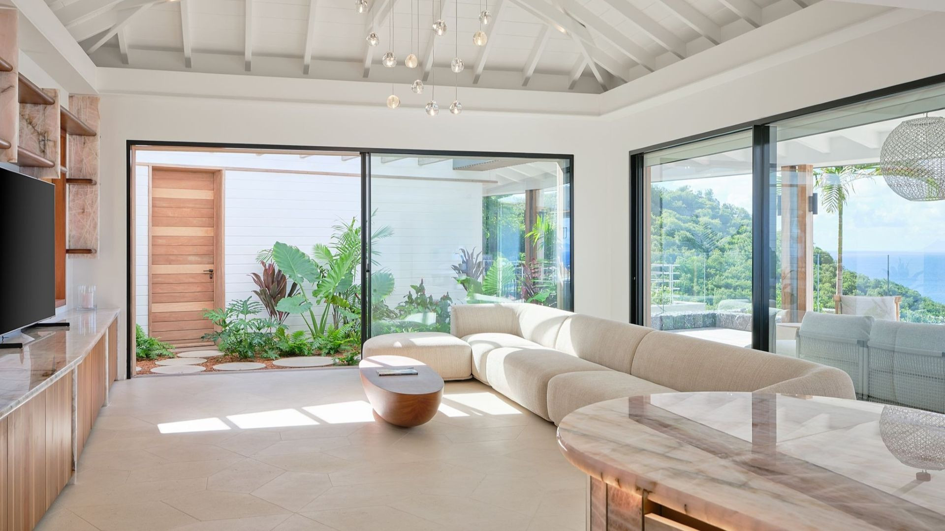 La propriété se distingue par son architecture contemporaine élégante et son intégration parfaite dans la nature tropicale de Saint-Barthélemy. Conçue pour une expérience de séjour haut de gamme, Villa SEL propose des espaces de vie ouverts sur l’extérieur avec un salon climatisé lumineux prolongé par une cuisine ouverte entièrement équipée, idéale pour un séjour en villa de luxe aux Caraïbes.