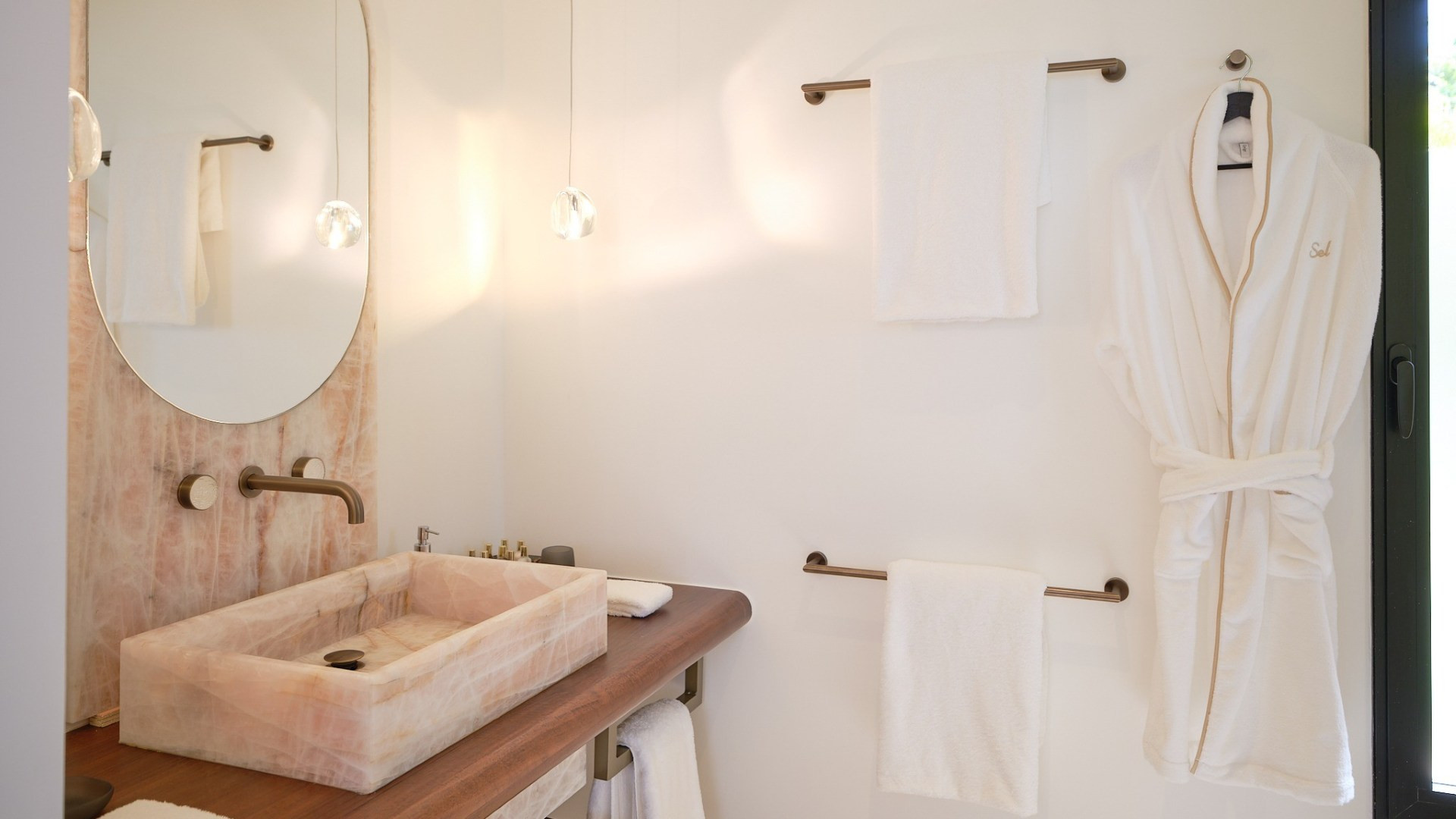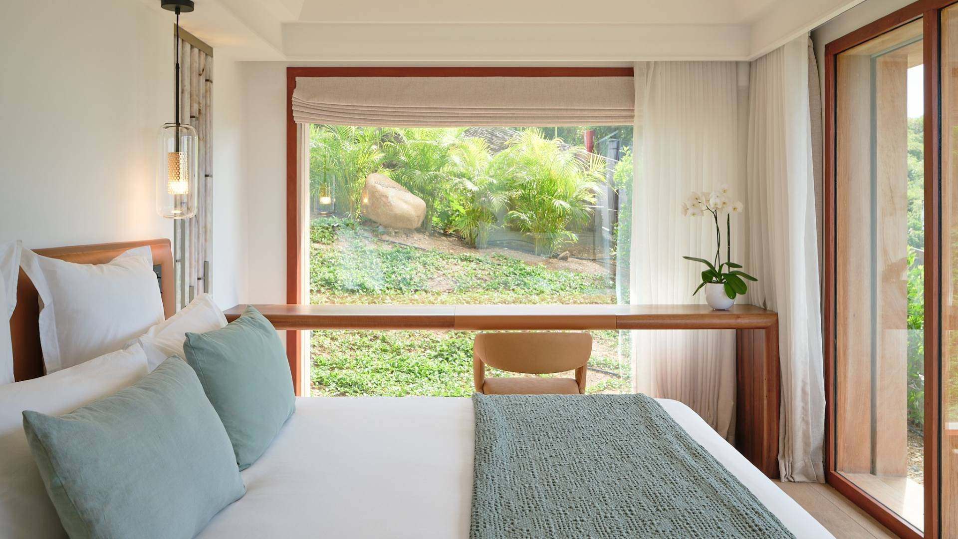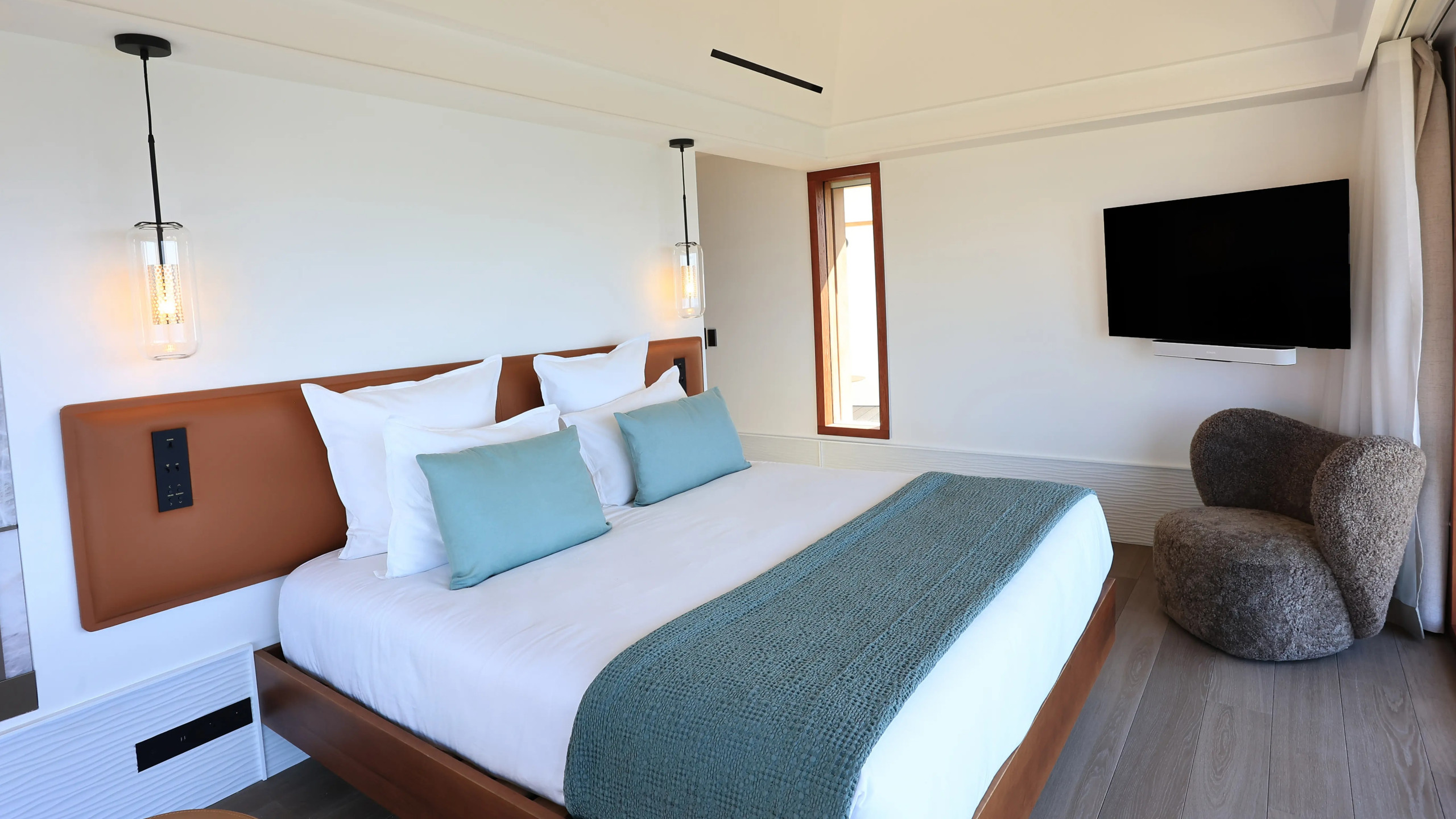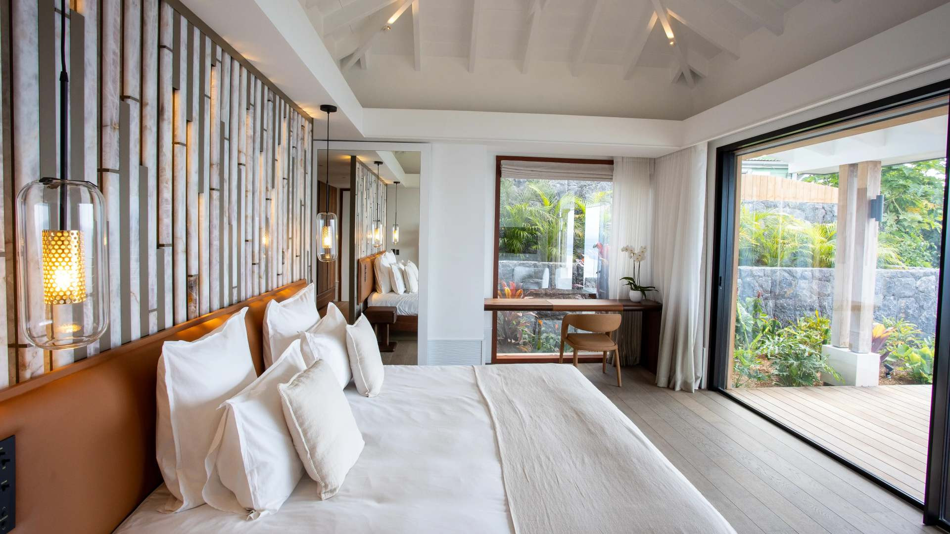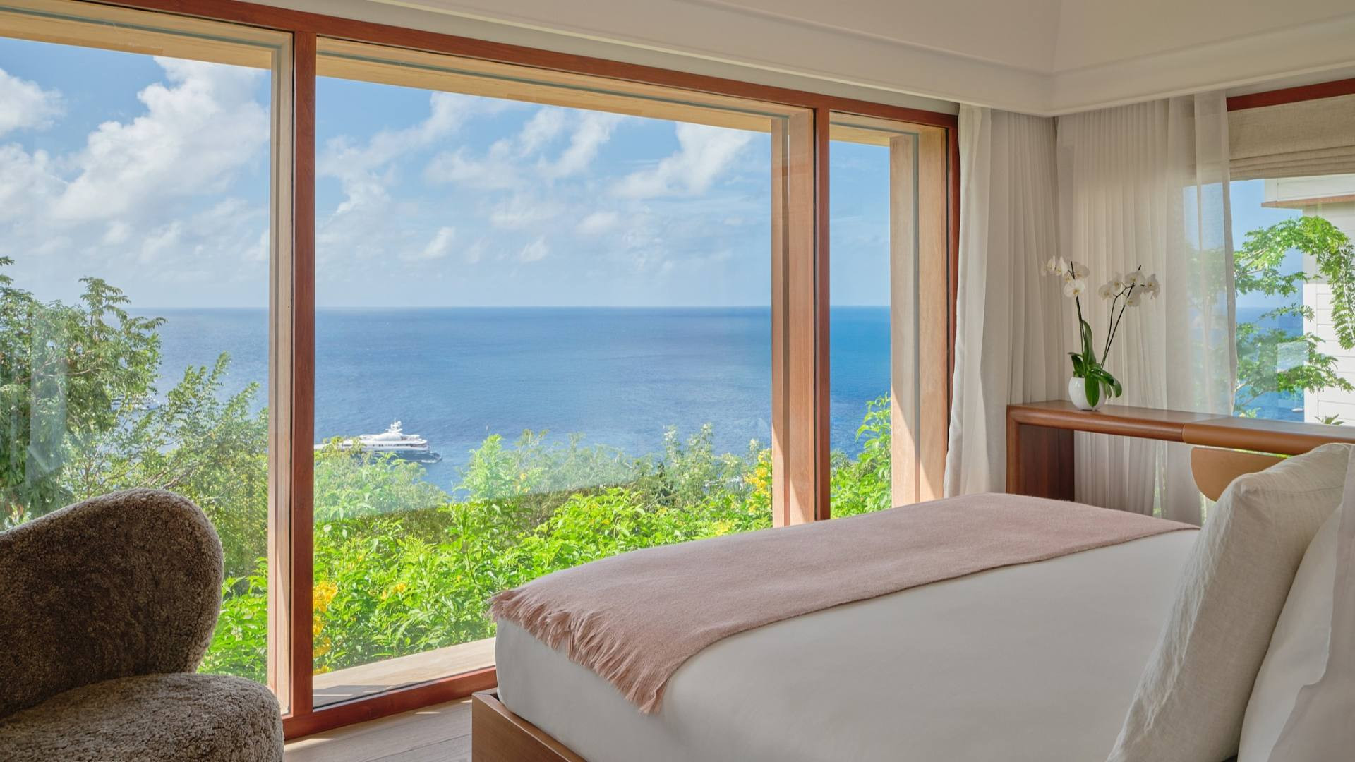 Villa SEL propose quatre chambres avec vue mer, réparties dans des bungalows indépendants afin de garantir intimité et confort. Trois chambres sont situées au niveau inférieur, chacune avec salle de bain en suite, tandis que la suite master, située au niveau de la piscine, bénéficie de grands volumes, d’un confort haut de gamme et d’un accès direct aux espaces extérieurs.