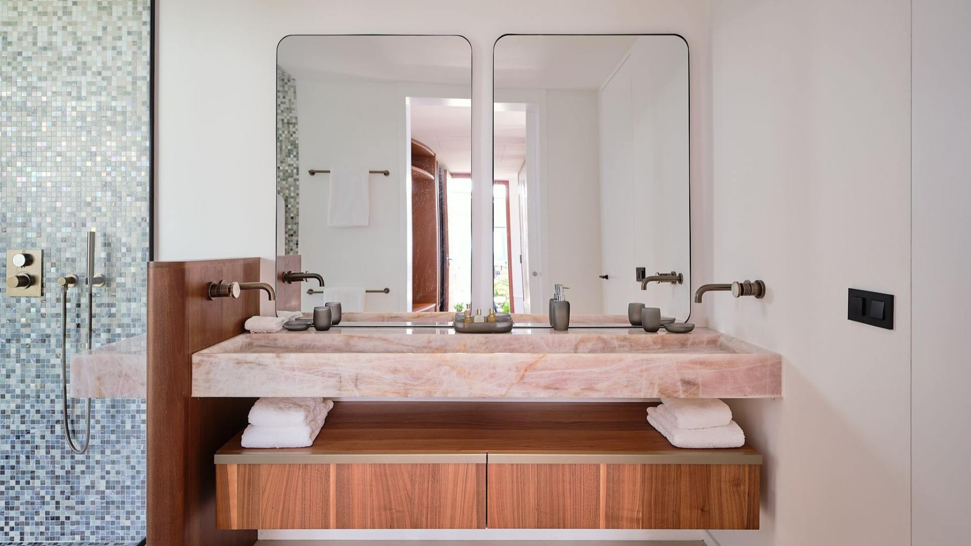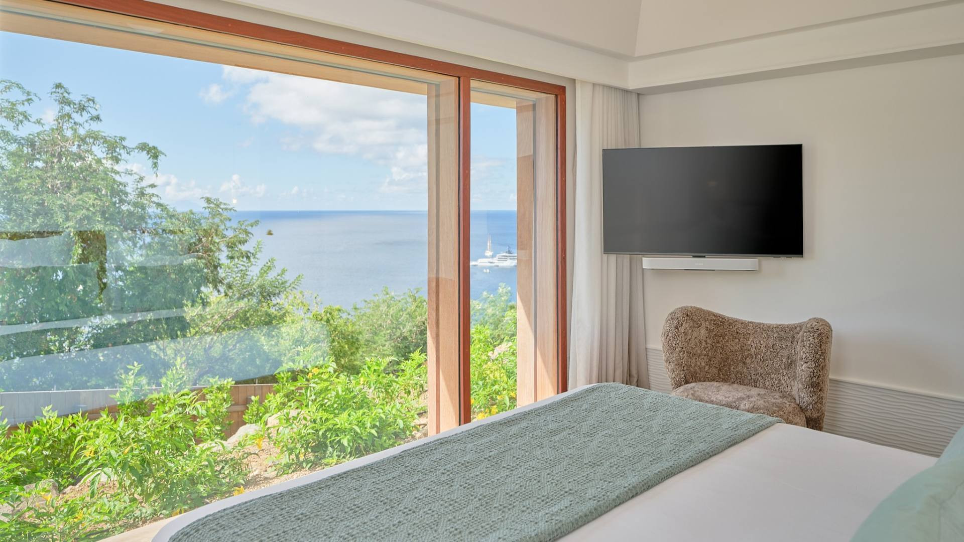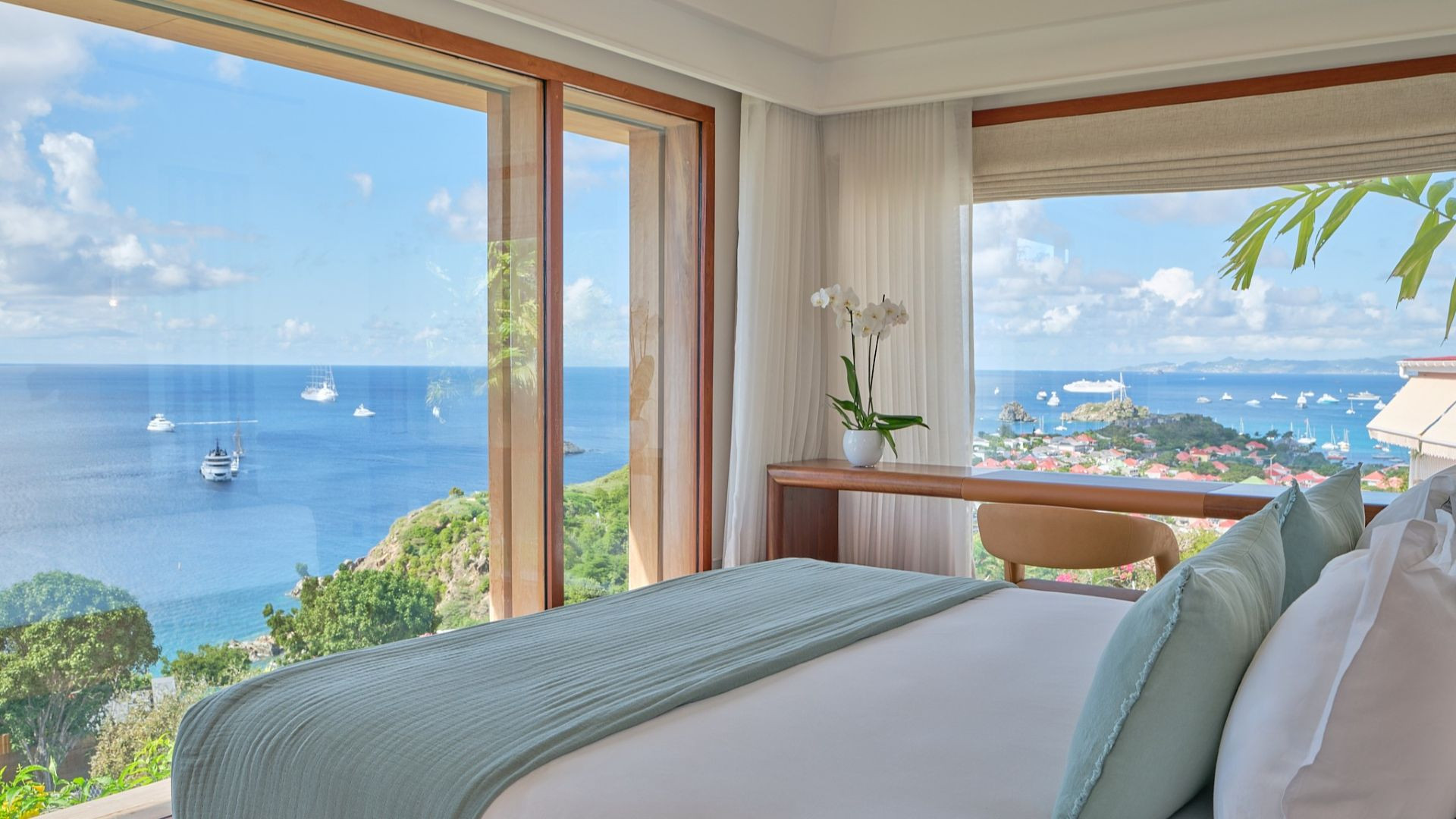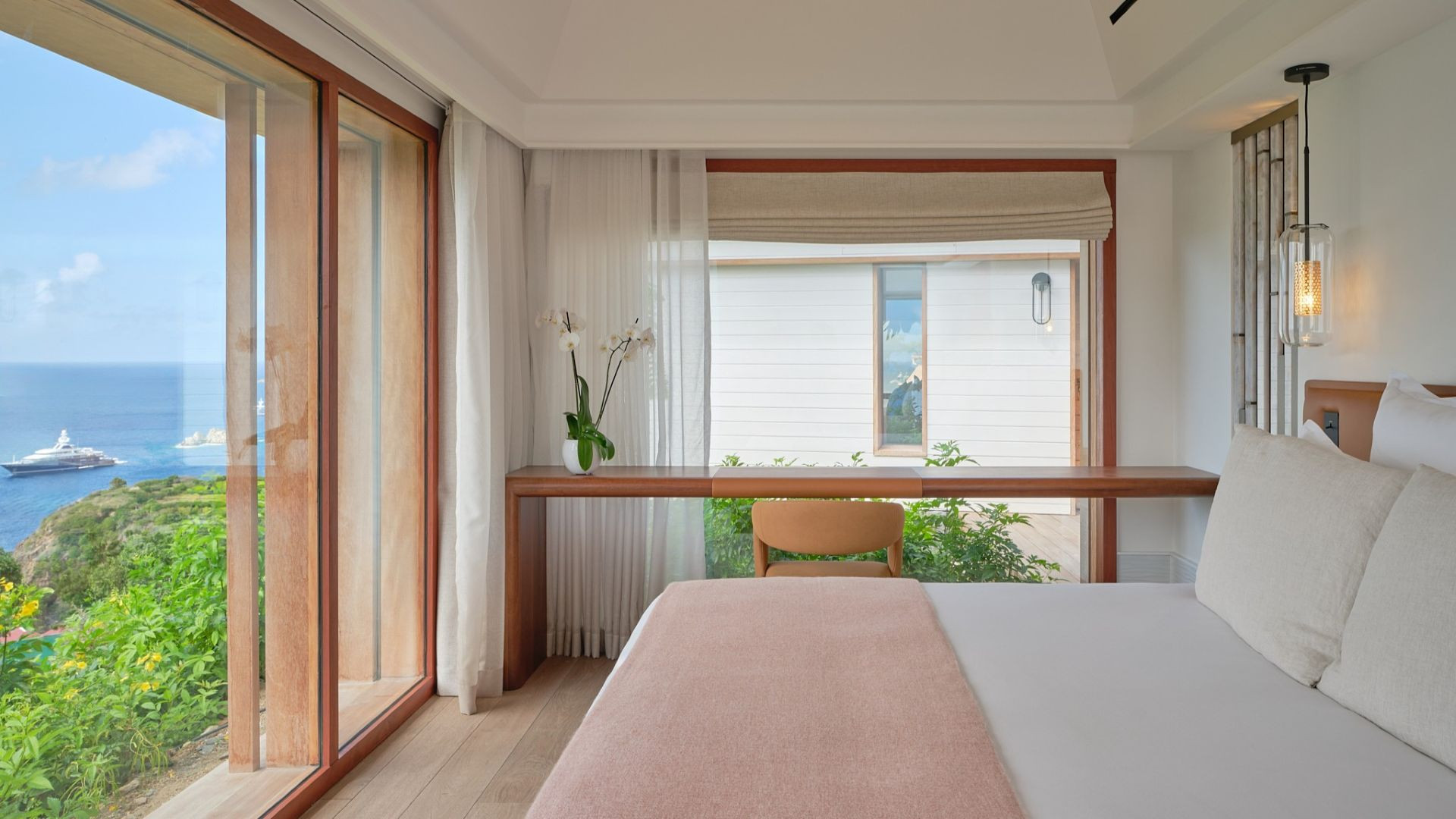 Avec quatre chambres en suite, cette villa St Barth offre un confort absolu et une intimité parfaite. Chaque chambre dispose d’un lit king-size, d’un mobilier en bois massif conçu sur mesure et d’une salle de bain attenante avec douche à paroi de verre, permettant d’admirer la végétation locale soigneusement aménagée. L’atmosphère chaleureuse et sophistiquée des espaces nuit invite à des nuits paisibles, bercées par la douceur des alizés et le murmure de la nature environnante.
