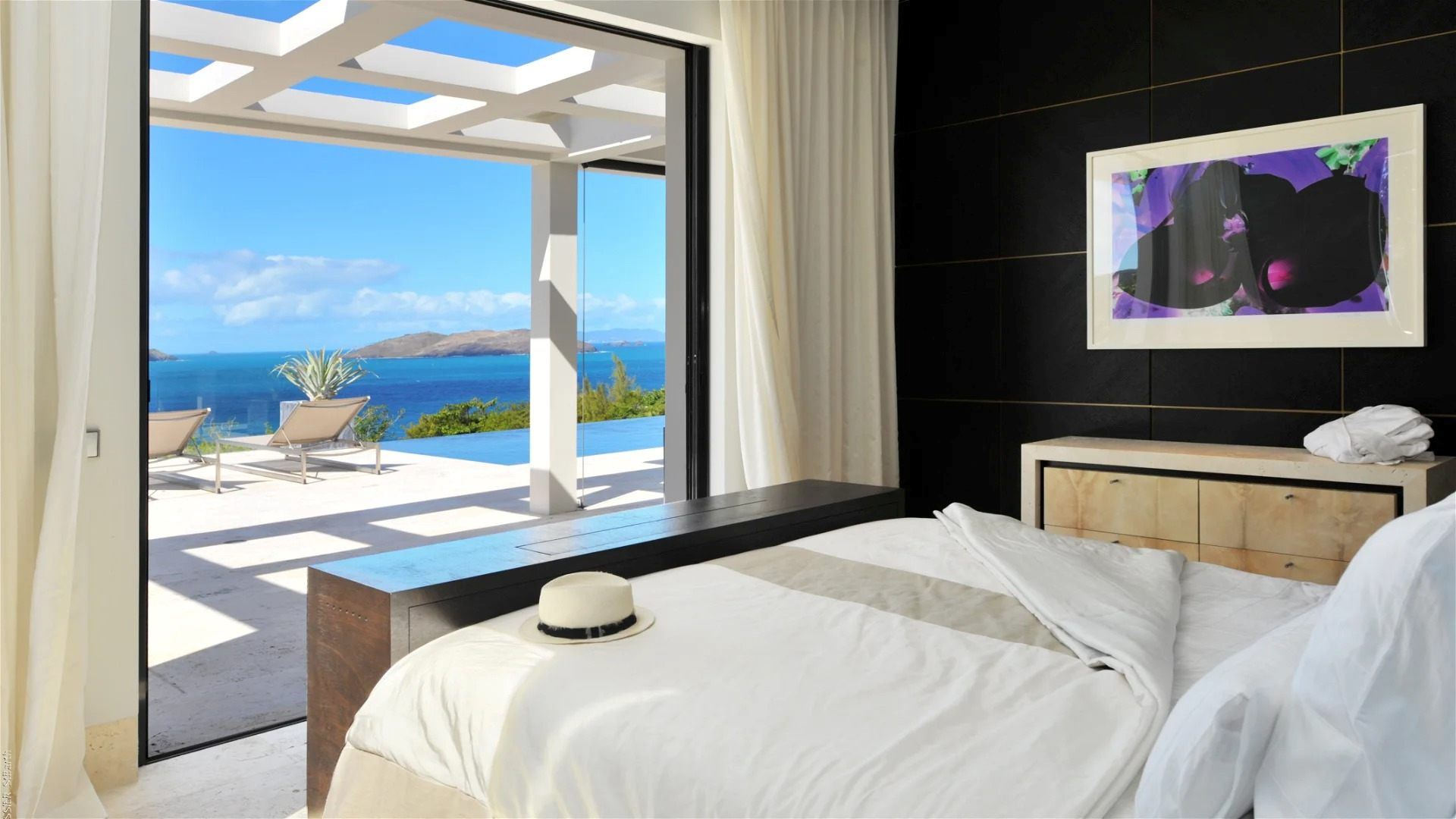 White leather sofas, custom hardwood furniture, built-in storage, and premium linens create an atmosphere that is both elegant and inviting. Open architecture seamlessly connects interior and exterior spaces, inviting guests to fully embrace the Caribbean lifestyle in absolute privacy and comfort.