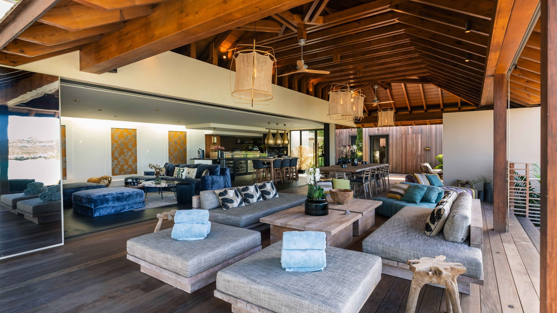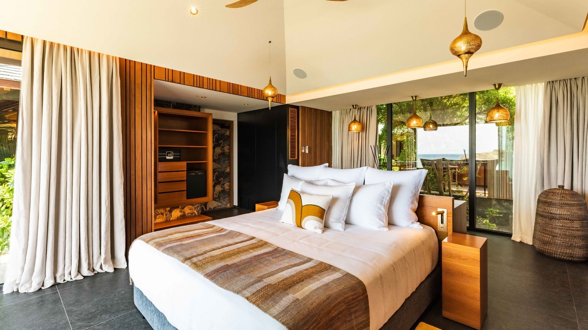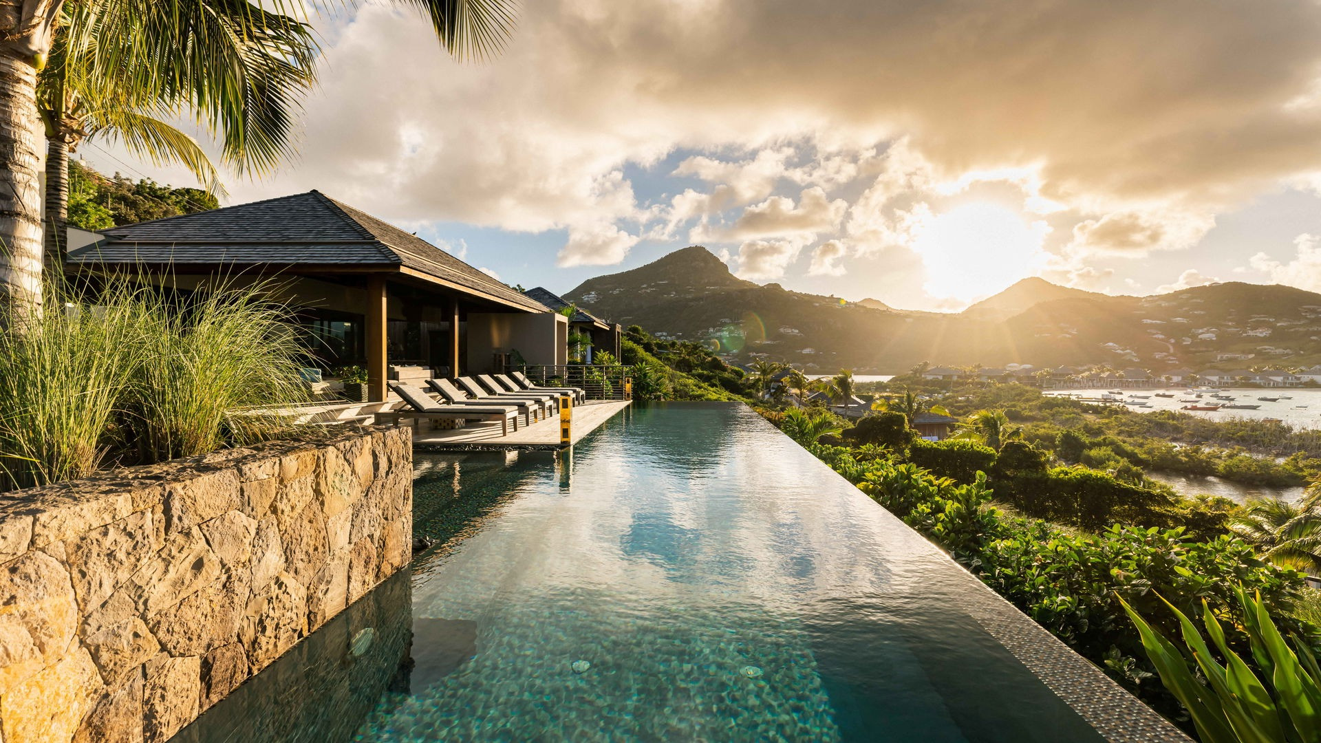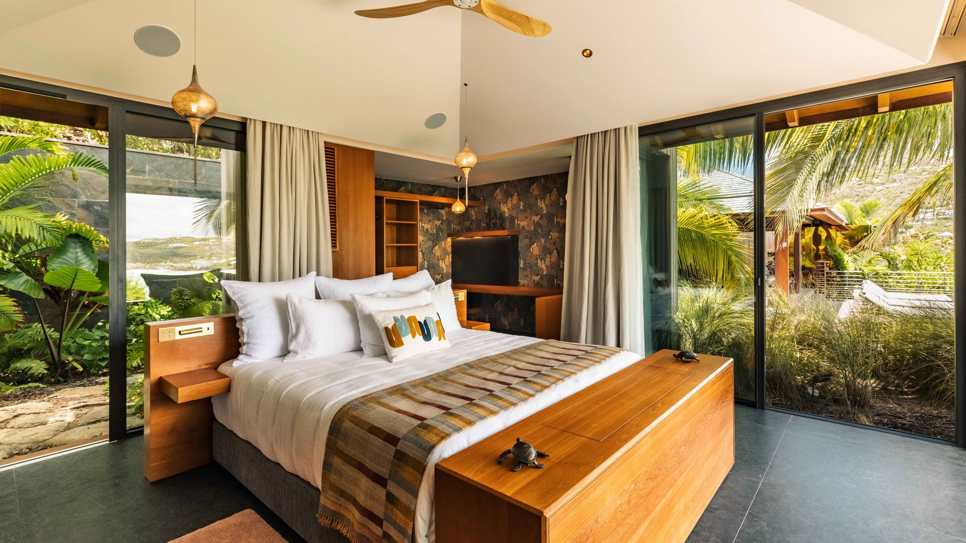 Outside, the private pool stretches out in front of the horizon, offering an exceptional panoramic view of the bay and the Caribbean Sea. This intimate space invites pure relaxation, where the deep blue of the sea and sky merge in an extraordinary setting.