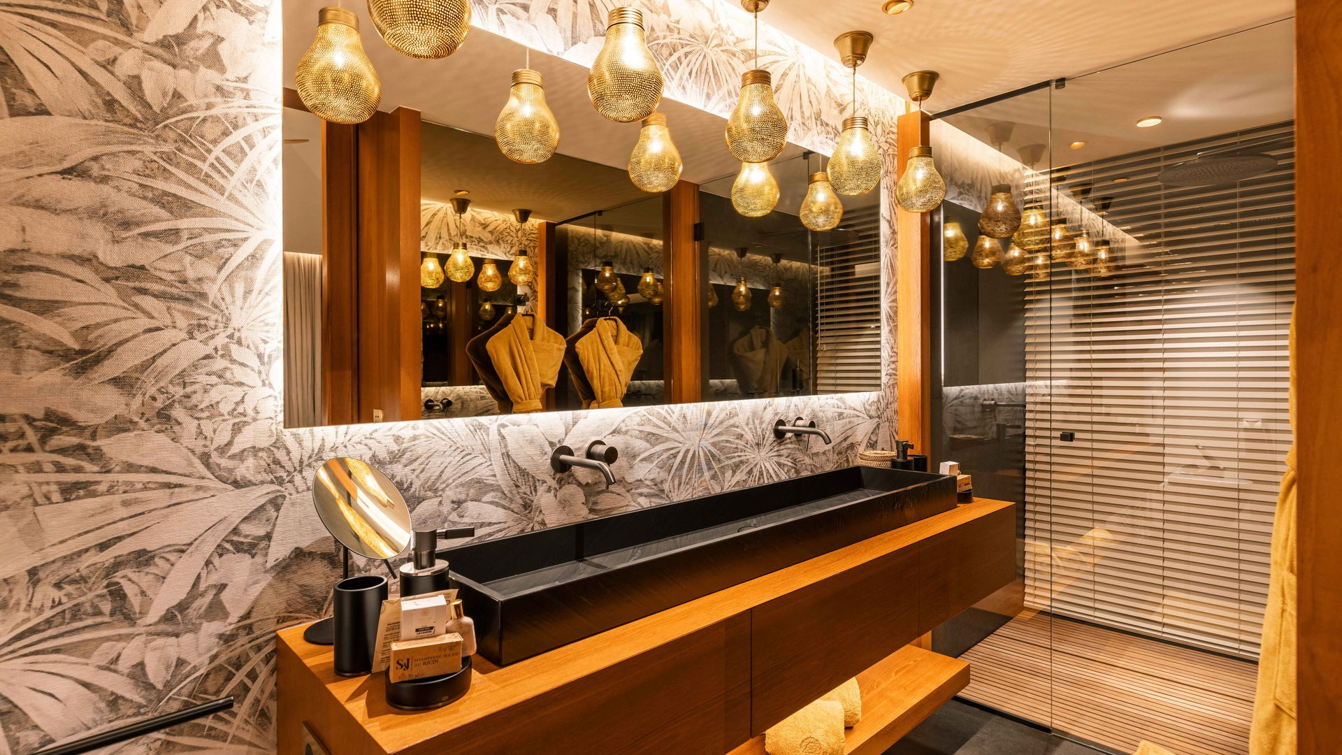 The two elegant en-suite bedrooms offer absolute comfort and are fully air-conditioned to ensure restful nights. Each bedroom features its own private bathroom, with an indoor shower and an outdoor shower located in a lush, private patio, offering a sensory experience in perfect connection with the natural surroundings.