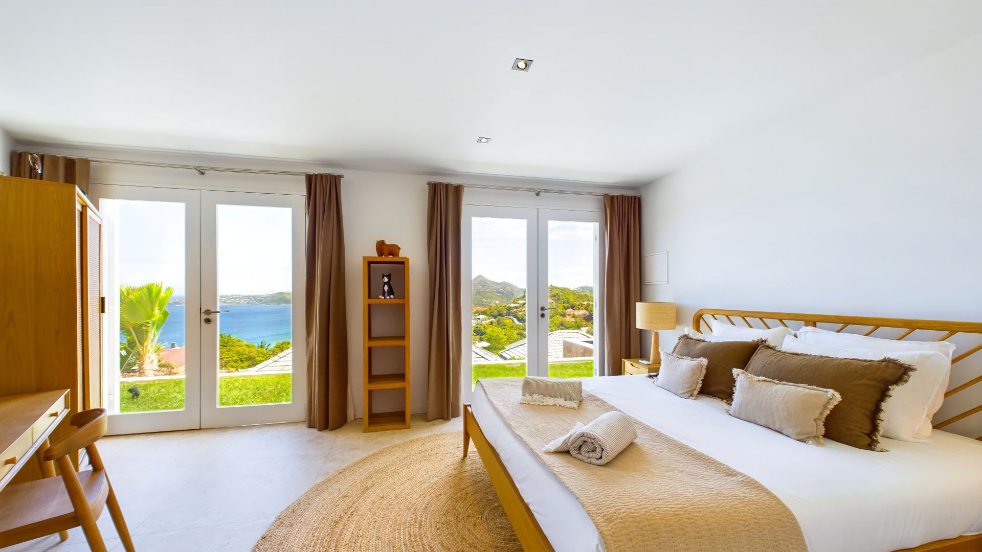 Outside, the private pool stretches out in front of the horizon, offering an exceptional panoramic view of the bay and the Caribbean Sea. This intimate space invites pure relaxation, where the deep blue of the sea and sky merge in an extraordinary setting.
